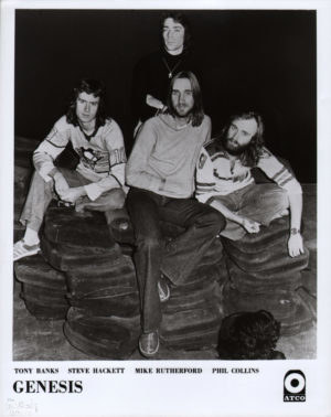Press photo of Genesis around the time of Wind and Wuthering, taken at The Rainbow Theatre in Finsbury, London. This image was taken around the time that the news broke …