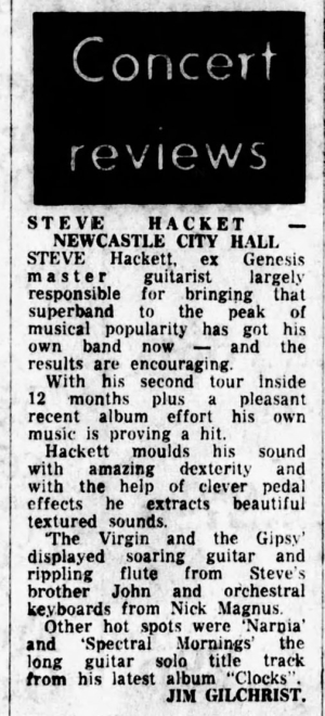 The Spectral Mornings tour – 1979 This concert review was published in The Durham Advertiser Darlington, Durham, England, on the 9th November, 1979 This concert took place at Newcastle City …