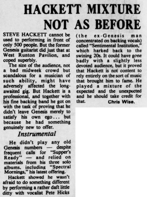 The Spectral Mornings tour – 1979 This concert review was published in The Eastern Evening News Norwich, Norfolk, England, on the 12th November 1979 This concert took place at The …