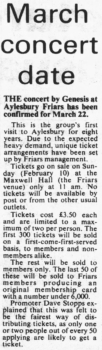 An advert for the Genesis Friars gig of 22nd March 1980! (Many thanks to NOV for this item)