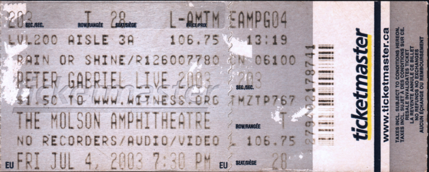 The Back To Front tour – 2012 This is a ticket for the show at The Air Canada Centre, Toronto, Ontario, Canada on the 19th September 2012