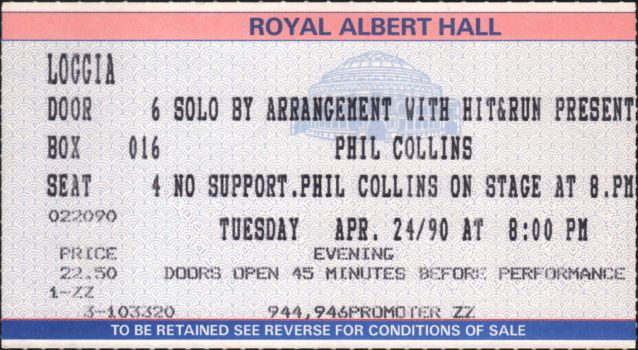 Hello I Must Be Going A ticket for the debut solo concert of Phil Collins at The Congresgebouw, Den Haag (the Hague), The Netherlands (Holland), on the 21st November 1982. …