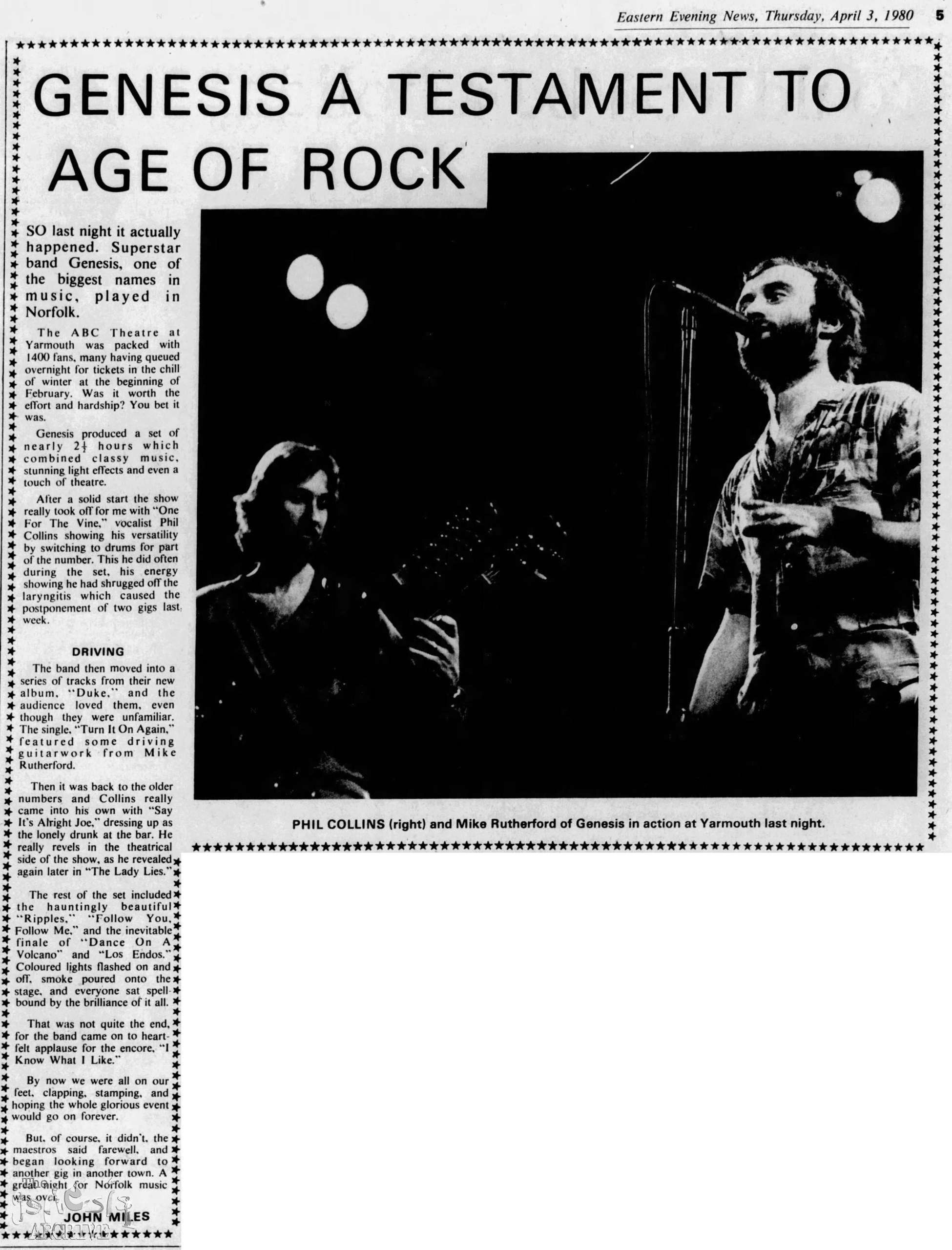 This concert review was published in The Eastern Evening News, Norwich, Norfolk, England on the 3rd April 1980.