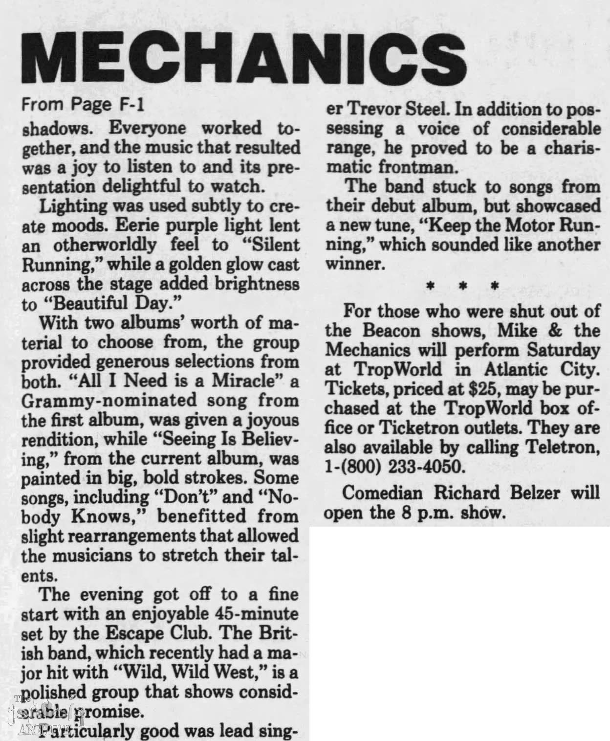 This concert review was published in The Record, Hackensack, New Jersey, USA on the 6th April 1989