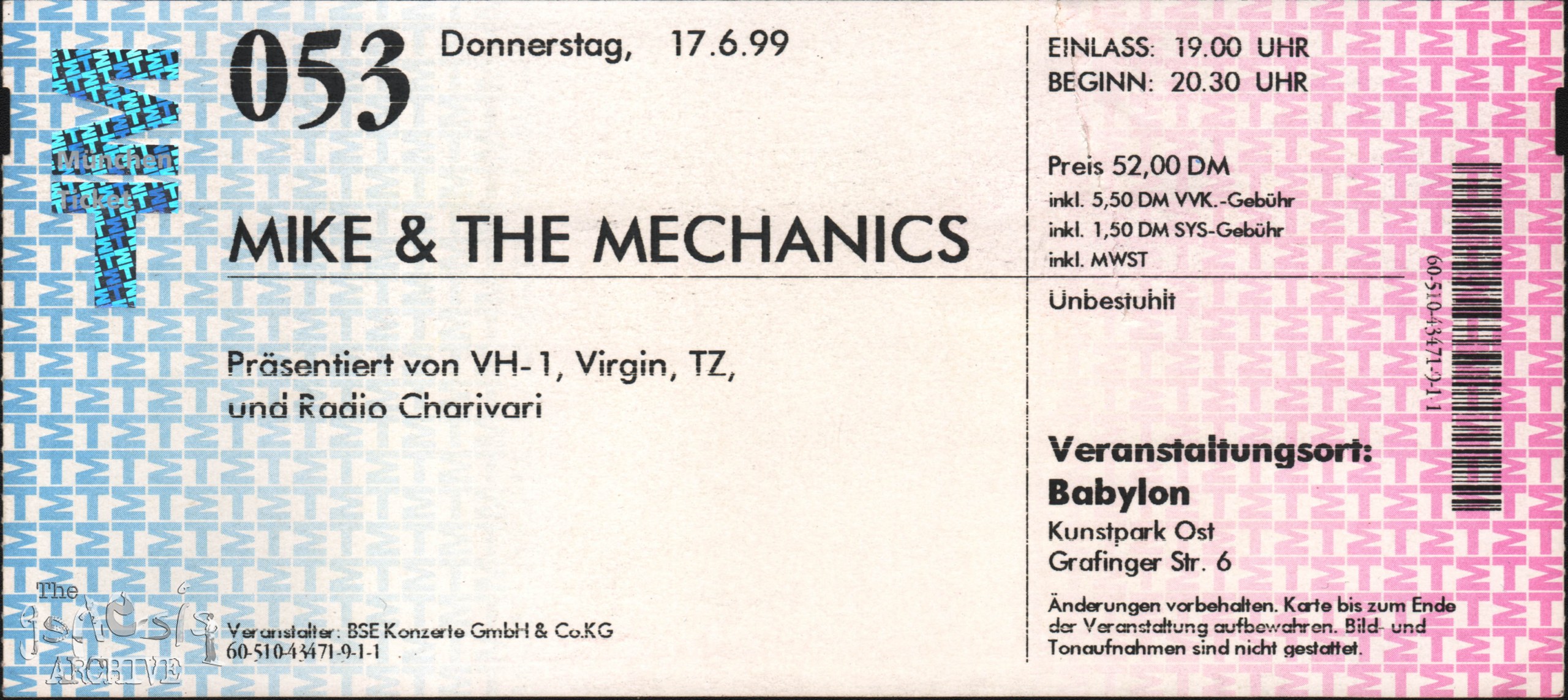 This is a ticket for the show at The Munich Babylon, Munich, Germany on the 17th June 1999.