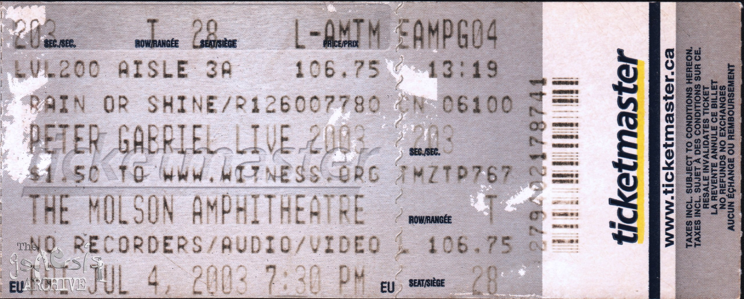 This is a ticket for the show at The Molson Amphitheatre, Toronto, Canada on the 4th July 2003.