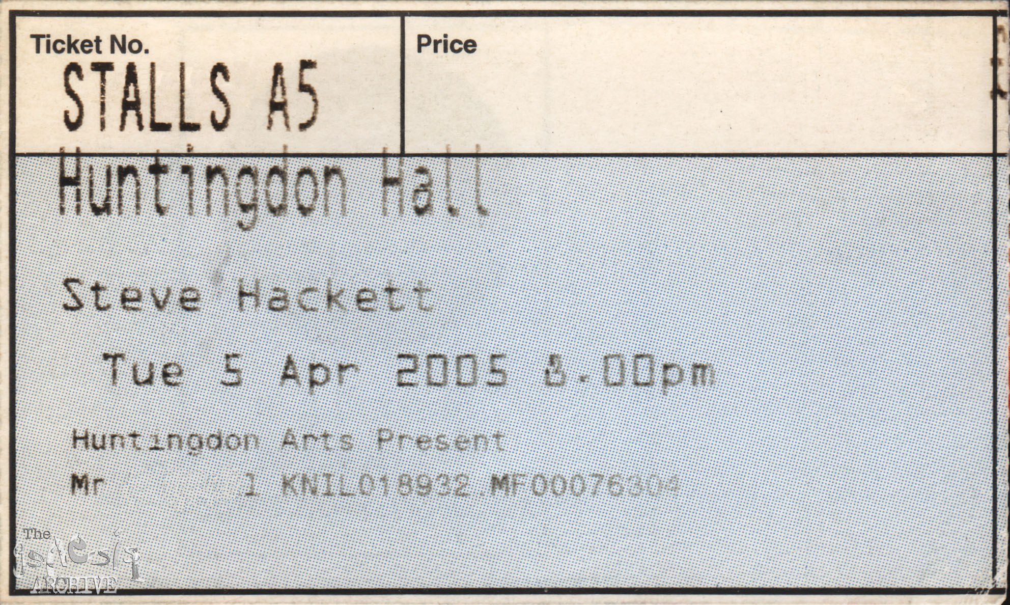 This is a ticket for the show at Huntingdon Hall, Worcester, England on the 5th April 2005
