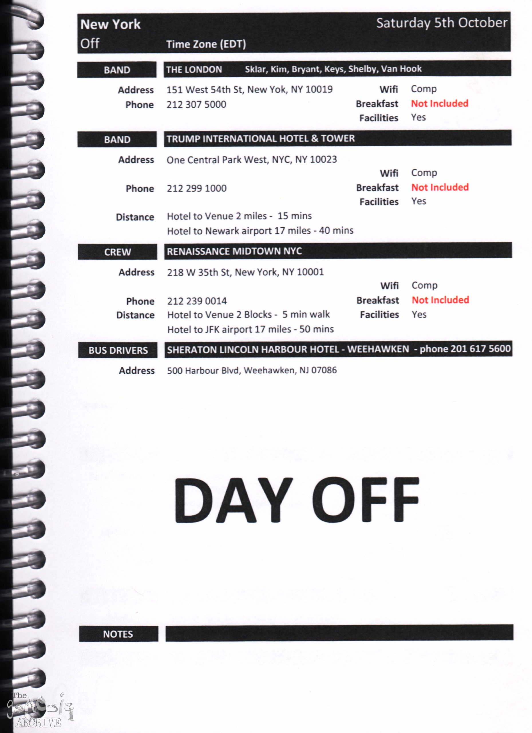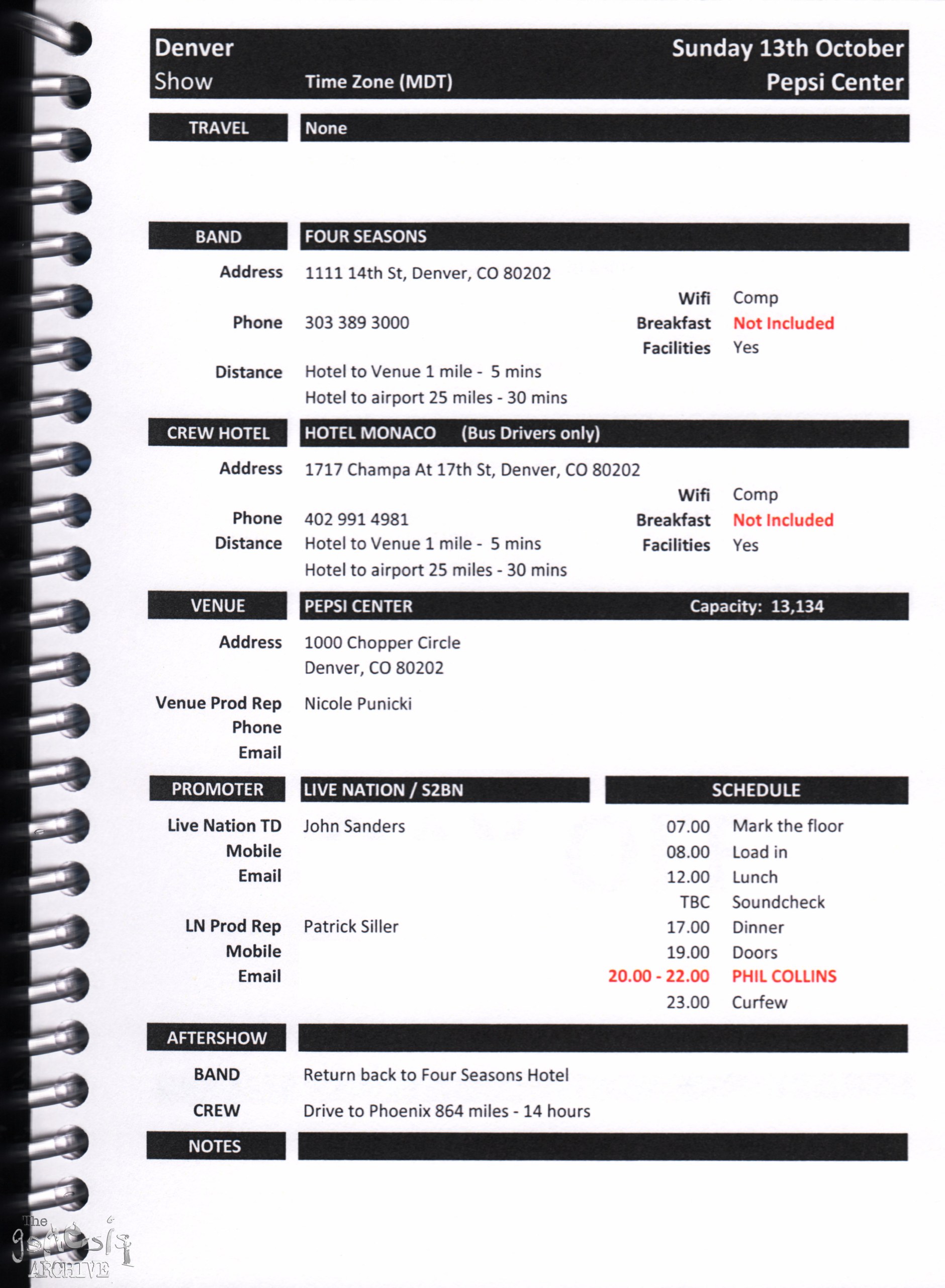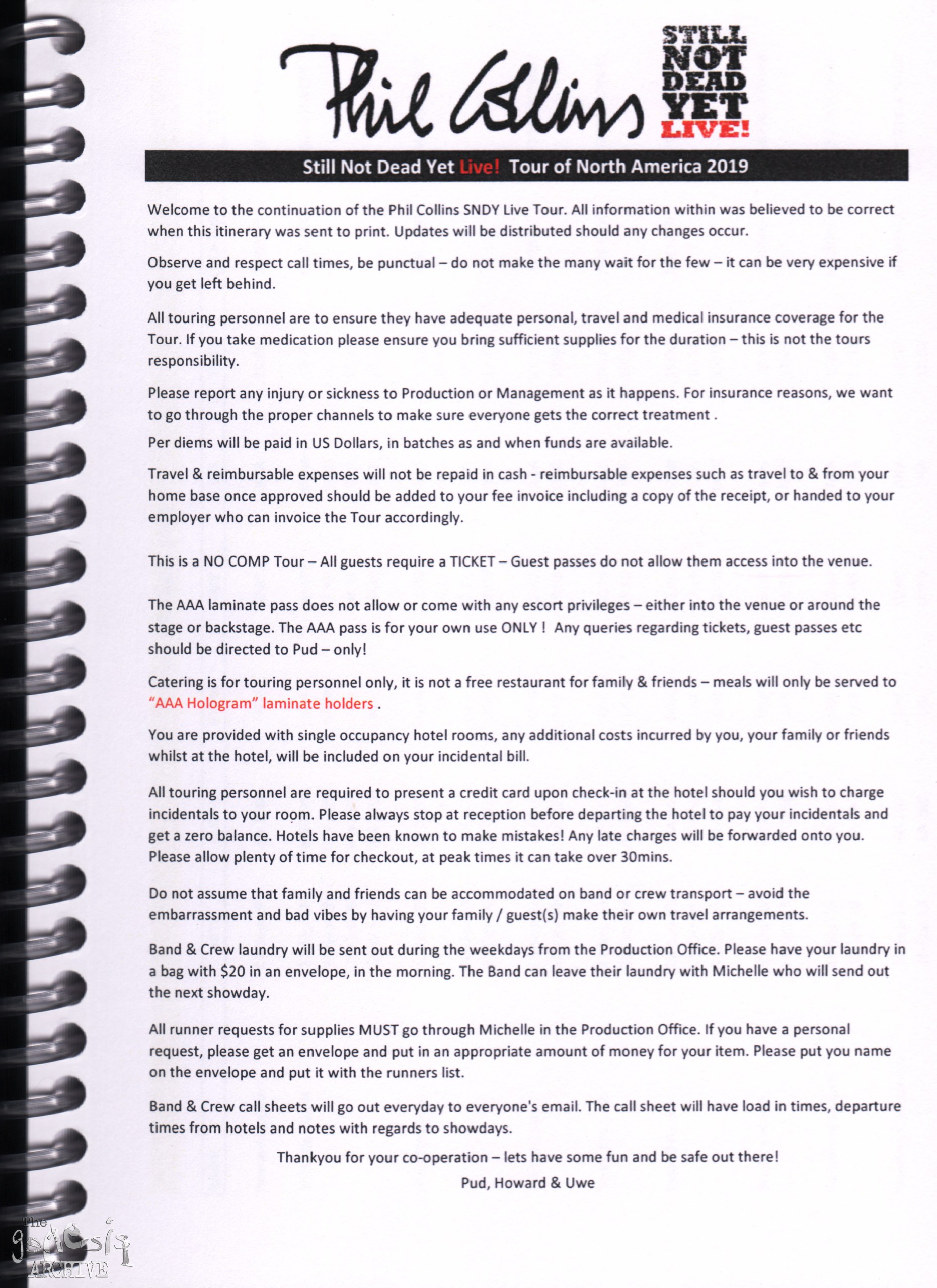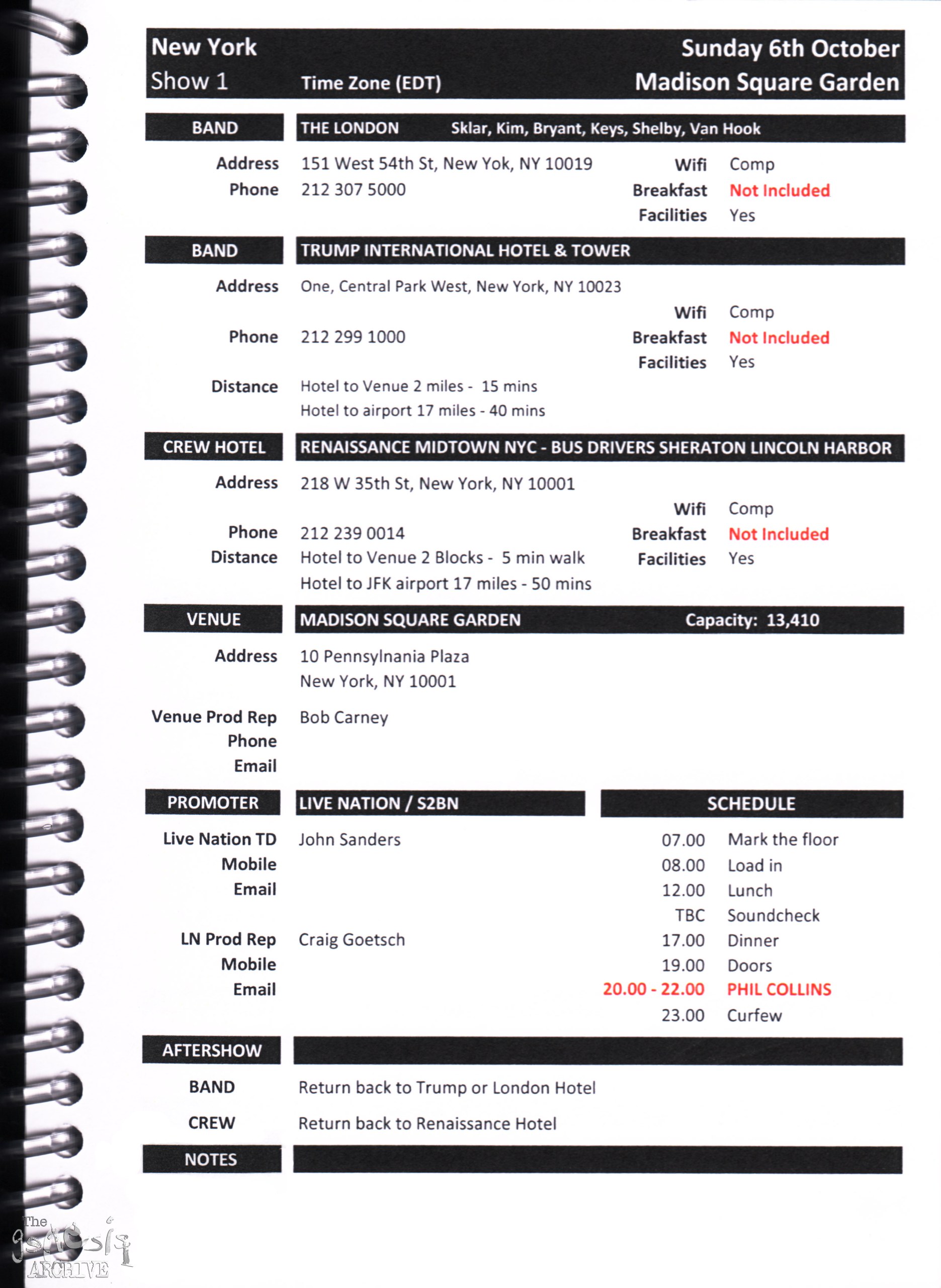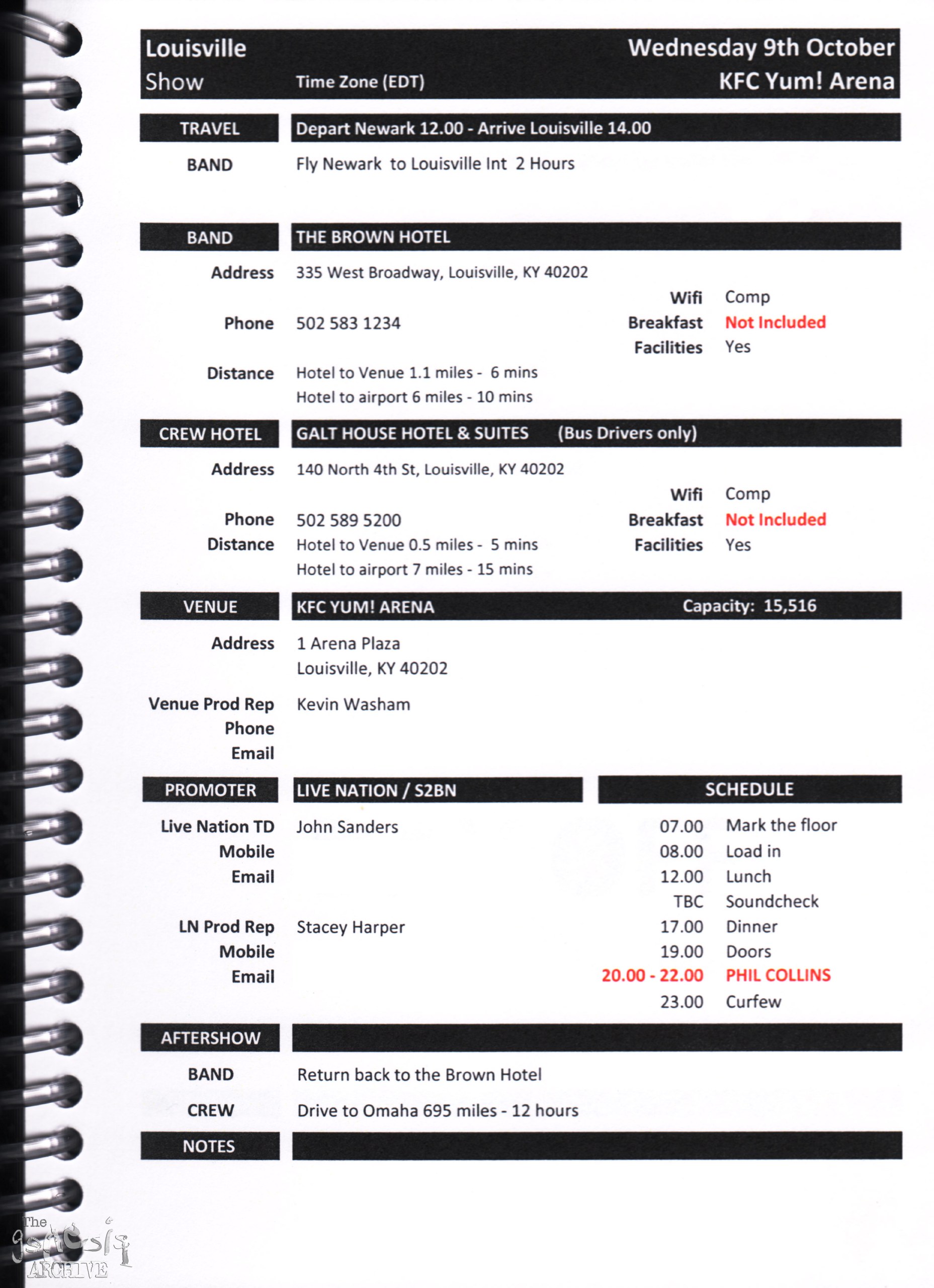 Remember, do not contact any of the companies listed. They will have signed Non disclosure agreements, so they cannot talk about the band/tour etc.