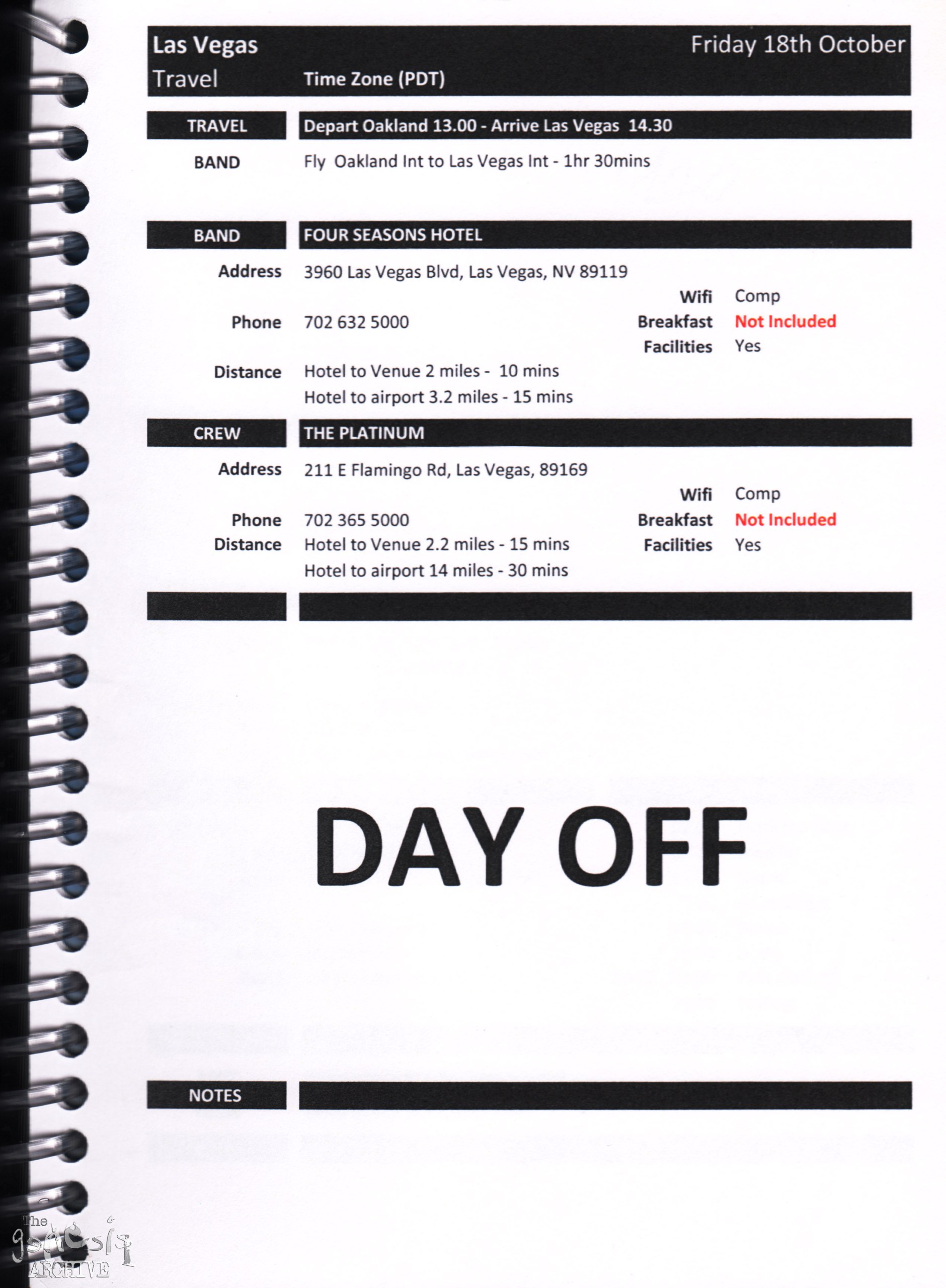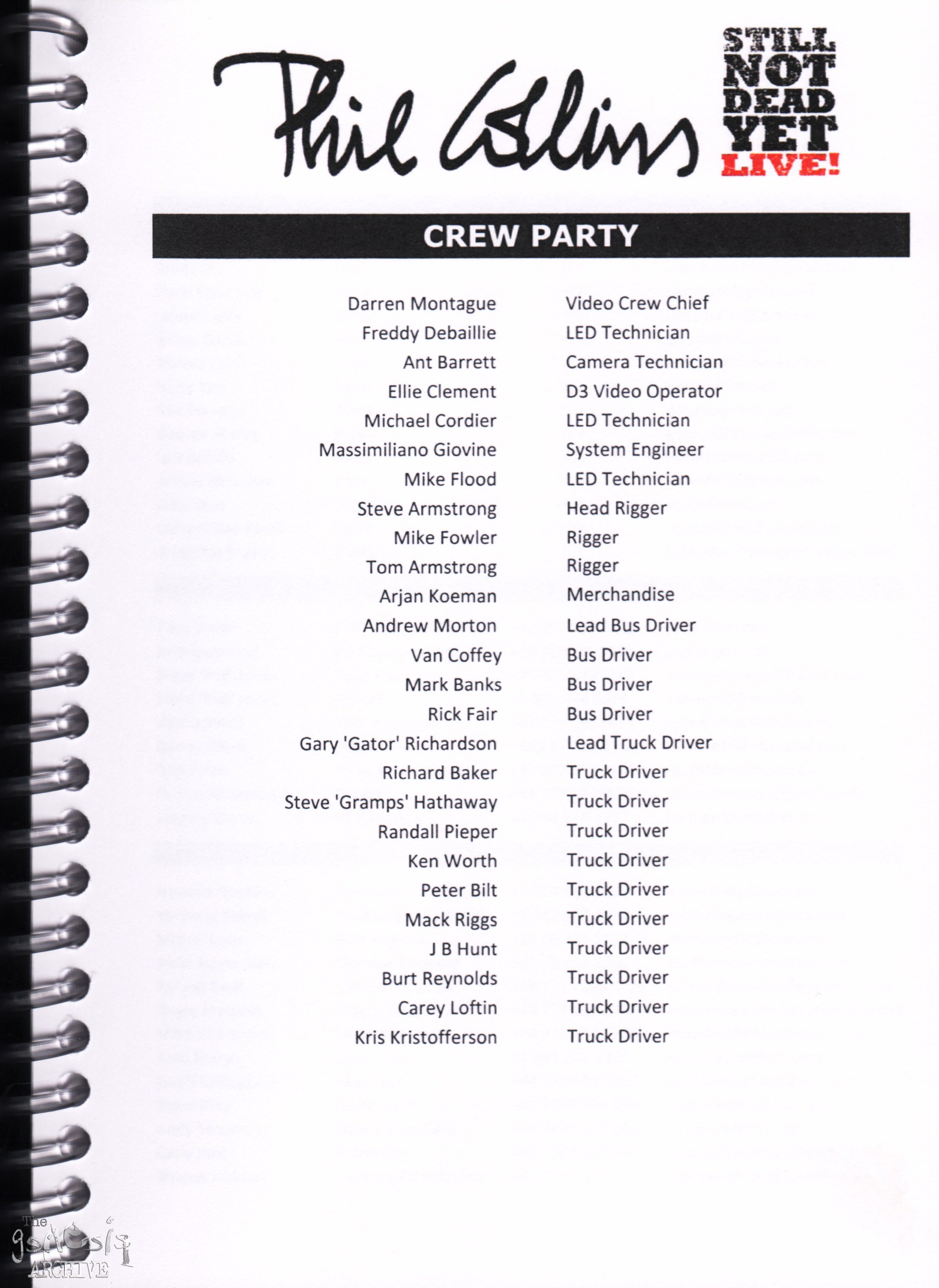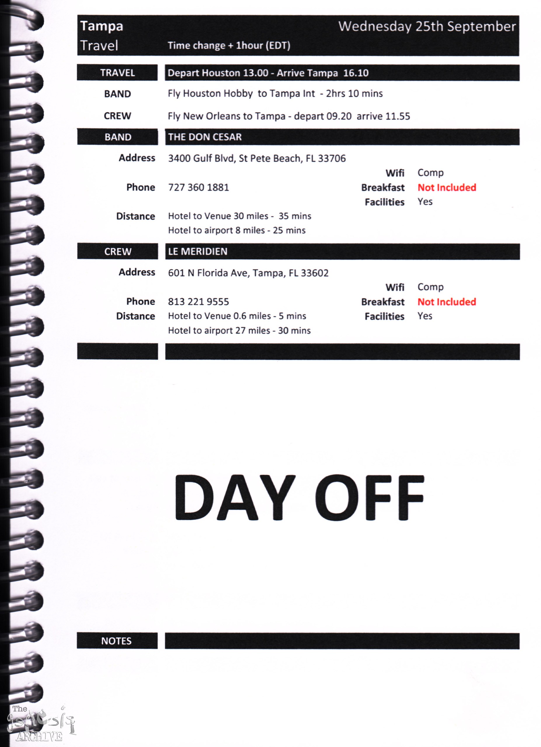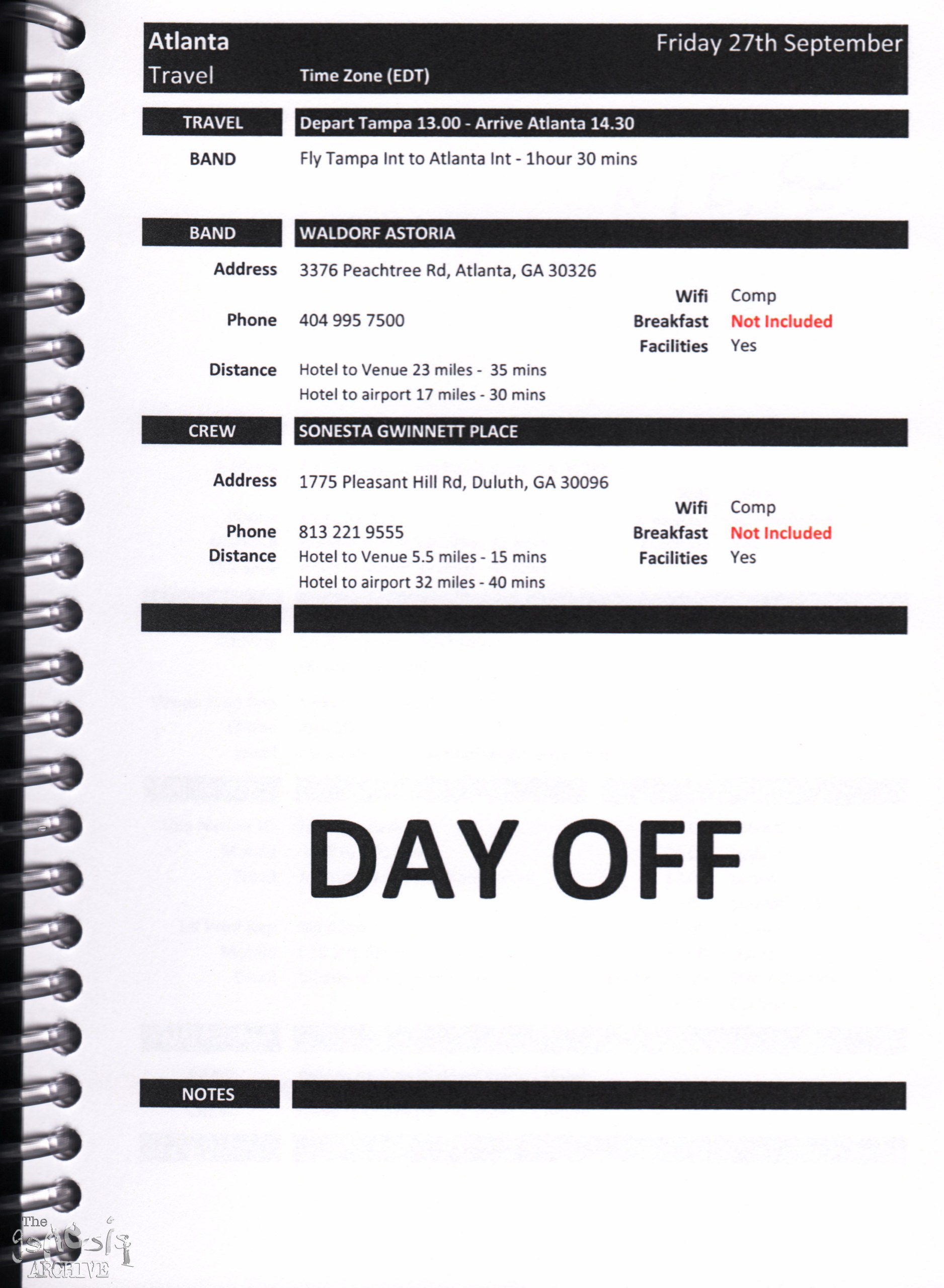 Remember, do not contact any of the companies listed. They will have signed Non disclosure agreements, so they cannot talk about the band/tour etc.