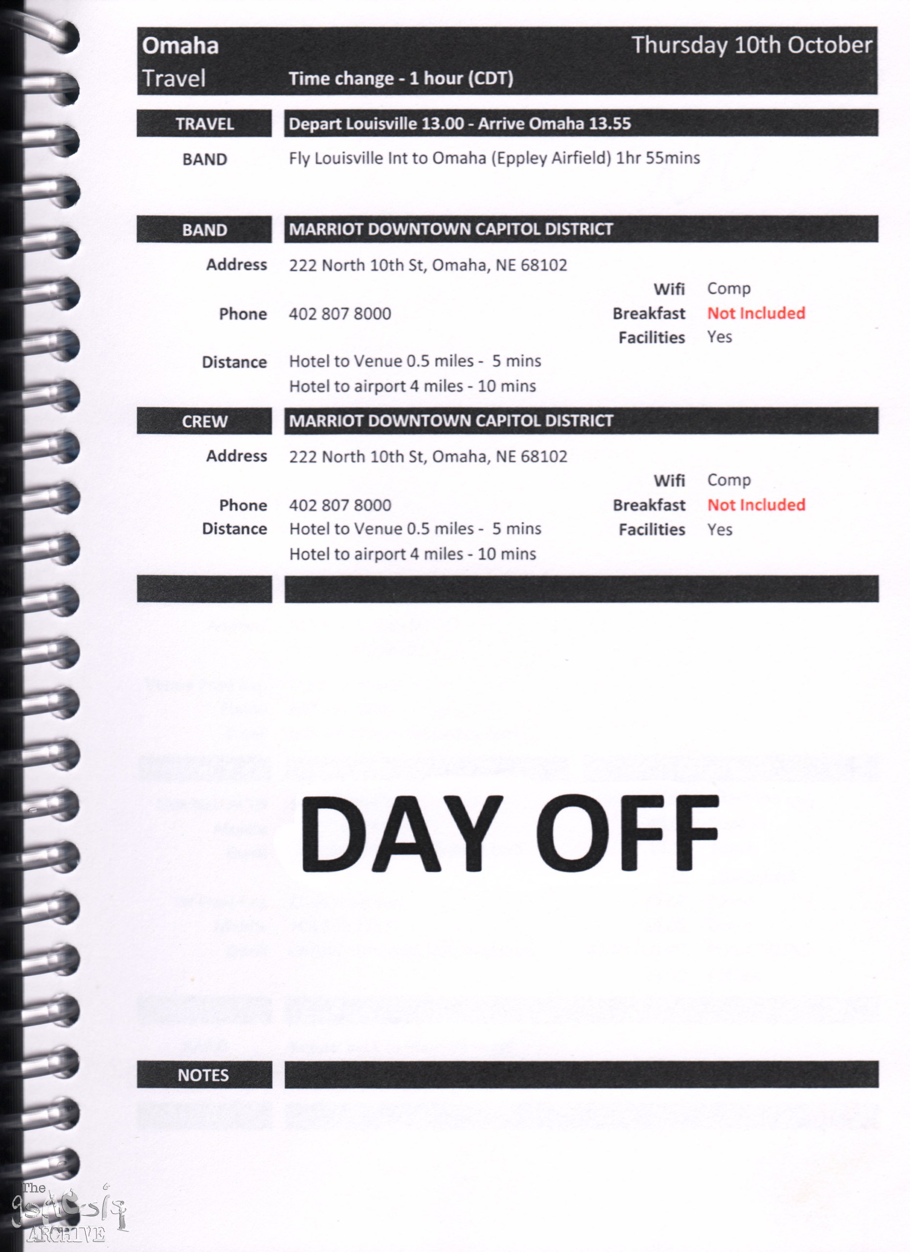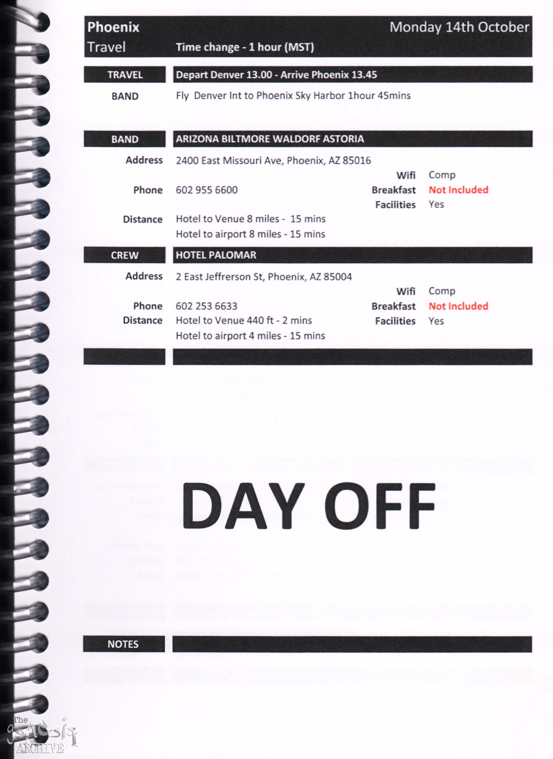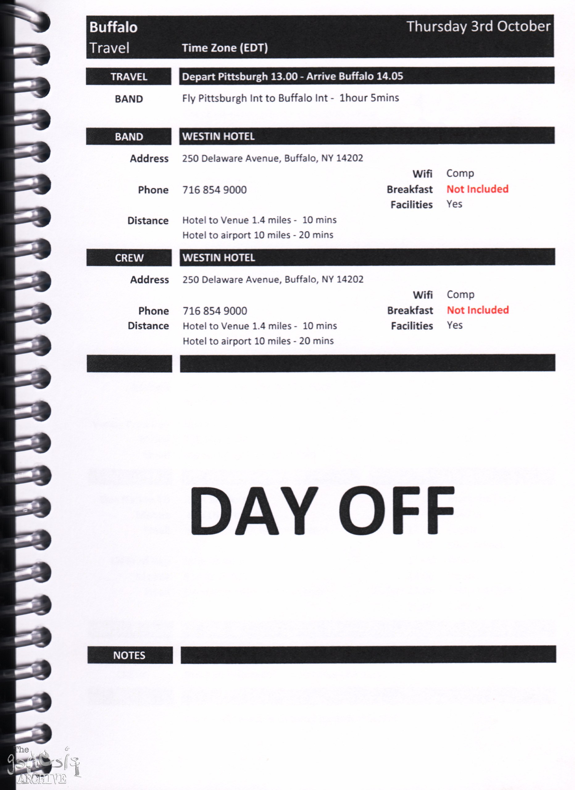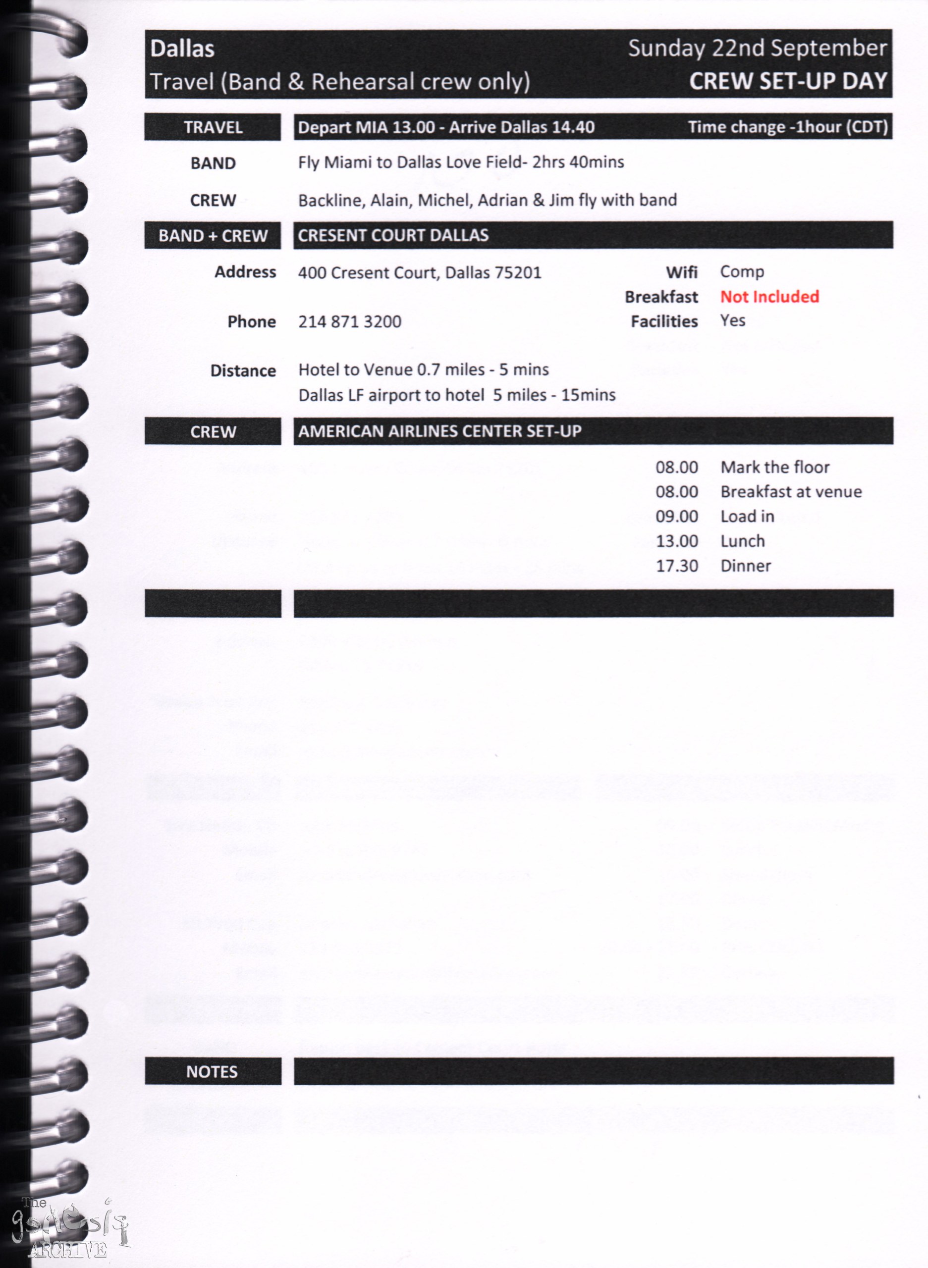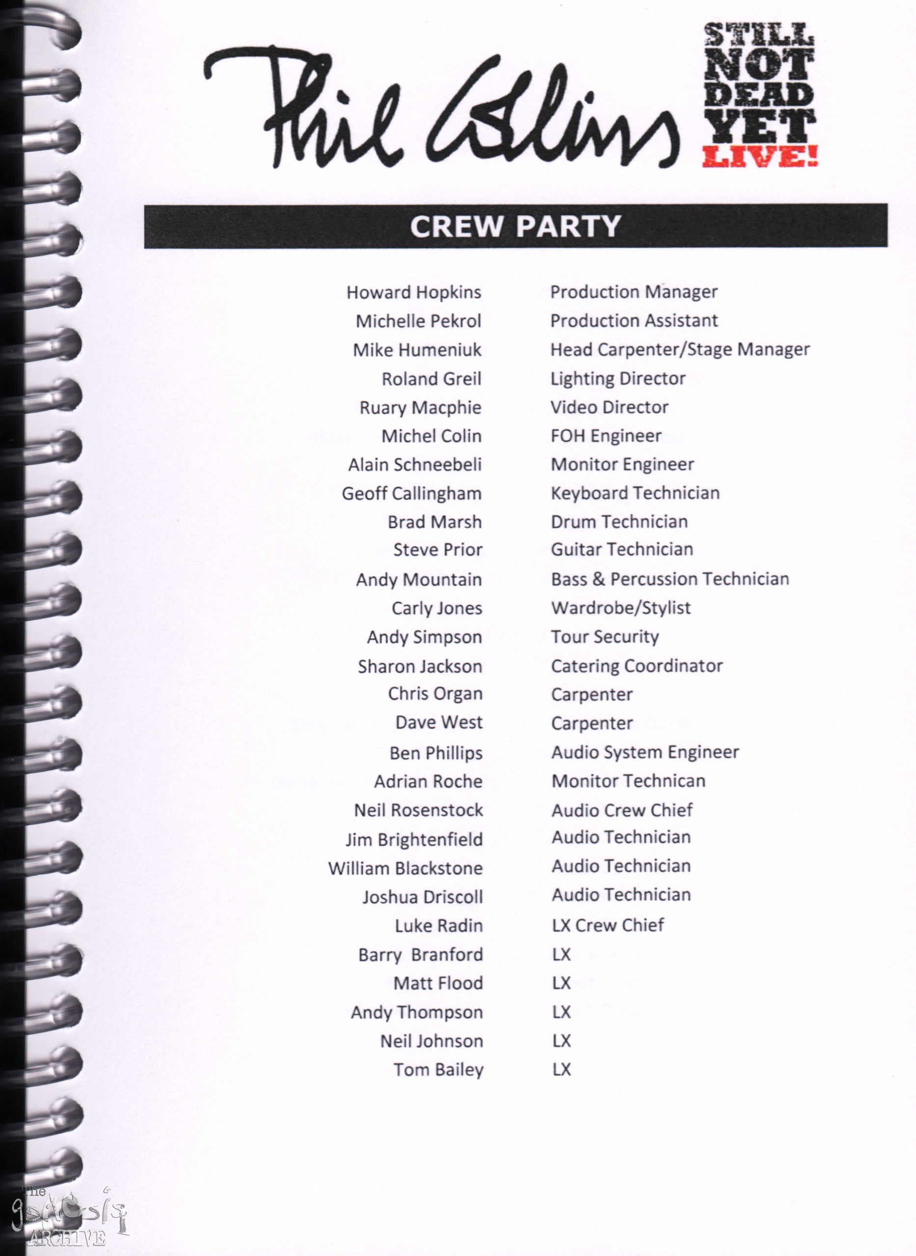 Remember, do not contact any of the companies listed. They will have signed Non disclosure agreements, so they cannot talk about the band/tour etc.